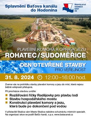 Zveme vás v sobotu 31. srpna od 12 do 16 hod. v rámci Dne otevřené stavby na prohlídku staveniště plavební komory a modernizaci jezu Rohatec/Sudoměřice!