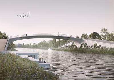 Porota na vítězném návrhu ocenila zejména integraci všech dopravních módů, což je kvůli převažujícímu podílu pěších a cyklistů vhodné řešení umožňující rovněž šířku mostovky pouze 9 m, což povede k úspoře realizačních i provozních nákladů. Dále porota vyzdvihla lapidární urbanistické řešení přemostění včetně intuitivní a přehledné pěší trasy. Návrh dle hodnocení poroty přinesl velmi dobré a čitelné krajinářské řešení. Pobytová místa u nástupů na rampy jsou vítanou přidanou hodnotou pro uživatele a prostředkem k lepšímu zapojení díla do kontextu přírodního parku a nábřeží kanálu. Porota se zabývala i konstrukčním řešením návrhu, kdy je efektivně využita integrace mostu a tím i eliminace ložisek a závěrů a v místech s obtížnou údržbou využívá efektivního materiálu UHPFRC.