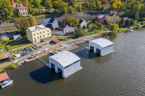 Stavba krytého stání bude situována u pravého břehu Labe ve zdrži Masarykova zdymadla v místě stávajícího stání říční policie. Ochranná stání budou obdélníkového tvaru se sklonem střechy směrem od břehu k vodě.