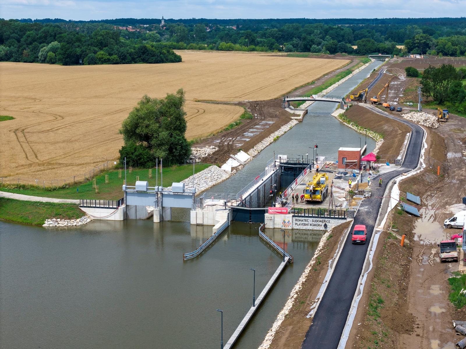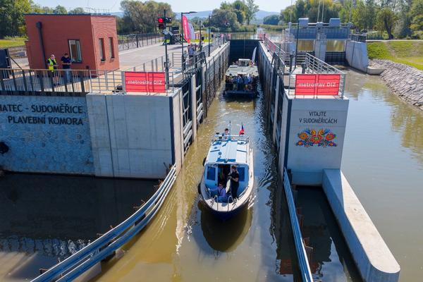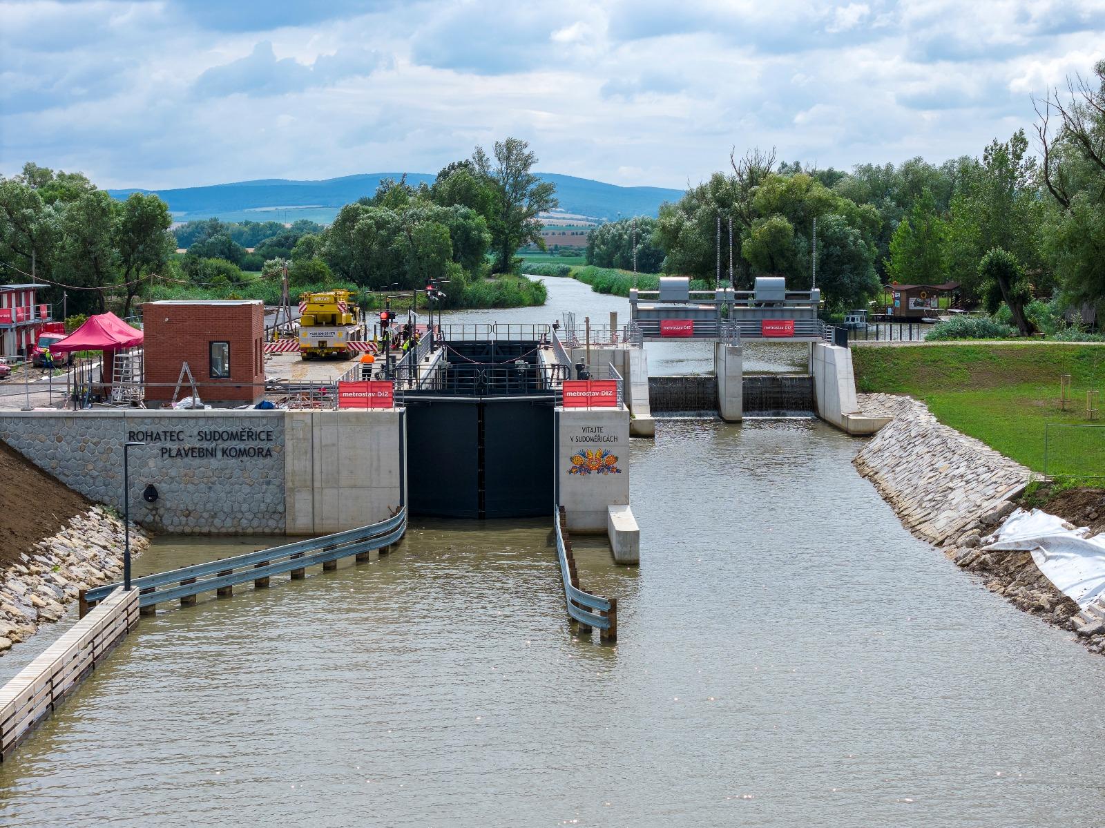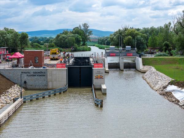 Nově vybudovaná plavební komora Rohatec – Sudoměřice na Baťově kanálu byla poprvé napuštěna vodou 9. července 2025.